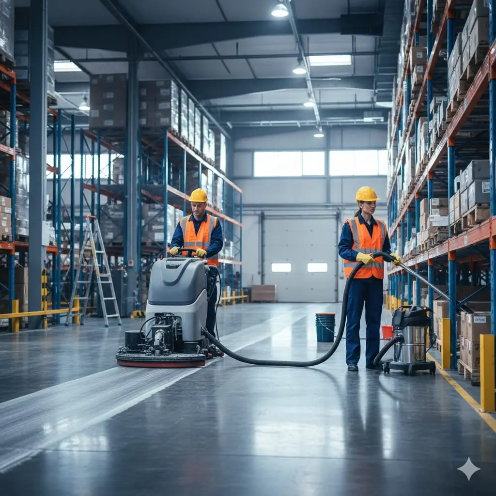Professional cleaning of warehouses and industrial spaces, keeping work areas clean, organised, and compliant with safety standards.